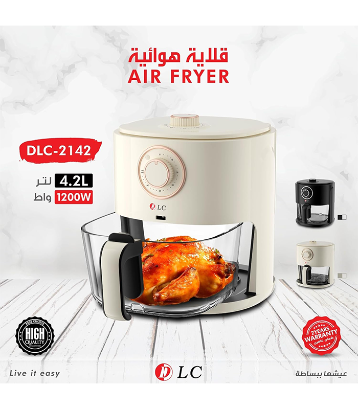 DLC DLC-2142 Visible Glass Air Fryer, 4.2L Capacity, 1200W Power, Adjustable Temperature, Transparent Bowl, Multicolor