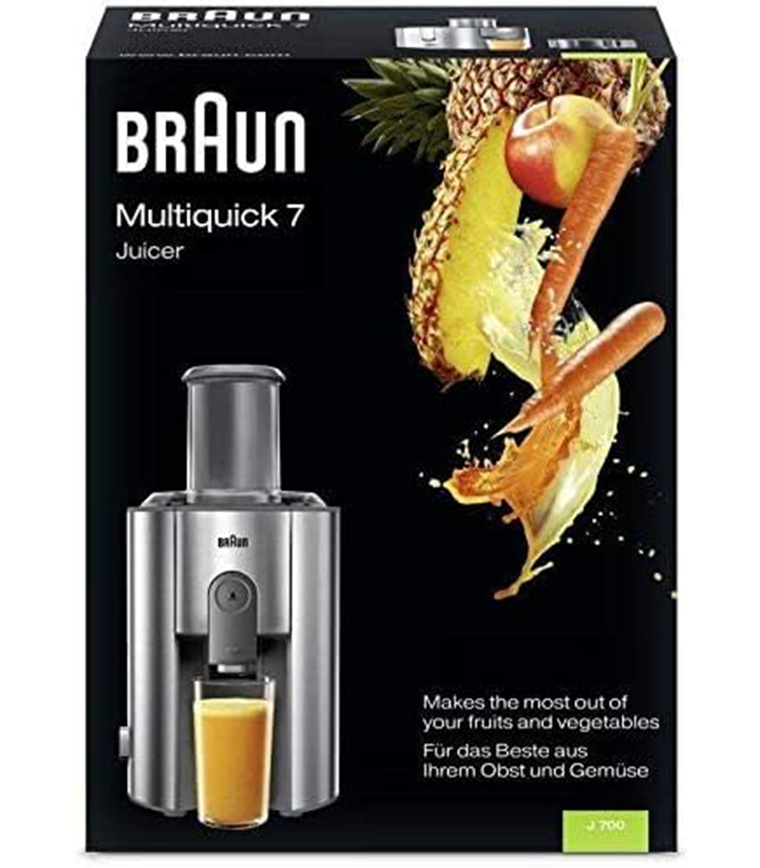 تم تصميم عصارة براون J700 لأولئك الذين يقدّرون السرعة والجودة في حياتهم اليومية. تعمل بمحرك قوي 1000 واط يتيح استخلاص العصير بسرعة وكفاءة، مما يجعلها مثالية للصباحات المزدحمة أو تحضير الوجبات السريع. بفضل فتحة التغذية الكبيرة 75 ملم يمكنك إدخال الفواكه والخضروات كاملة دون الحاجة إلى التقطيع المسبق، لتوفير وقتك وجهدك.تأتي العصارة مع حاوية عصير بسعة 1.25 لتر تكفي لإعداد عدة حصص دفعة واحدة. كما أن نظام منع التنقيط يضمن سكبًا نظيفًا، بينما تحافظ الفوهة المانعة للرذاذ على مطبخك خاليًا من الفوضى أثناء التشغيل. بفضل هيكلها المصنوع من الستانلس ستيل، فهي متينة وأنيقة في الوقت نفسه، مما يضيف لمسة عصرية إلى مطبخك.لضمان الأمان، تحتوي العصارة على نظام أمان رباعي يقوم بإيقاف تشغيل الجهاز تلقائيًا في ثوانٍ إذا لم يتم تجميع الأجزاء بشكل صحيح. كما أن أجزاؤها قابلة للغسل في غسالة الصحون، مما يجعل تنظيفها سريعًا وسهلاً. استمتع بحياة صحية ومشروبات لذيذة مع عصارة براون J700.