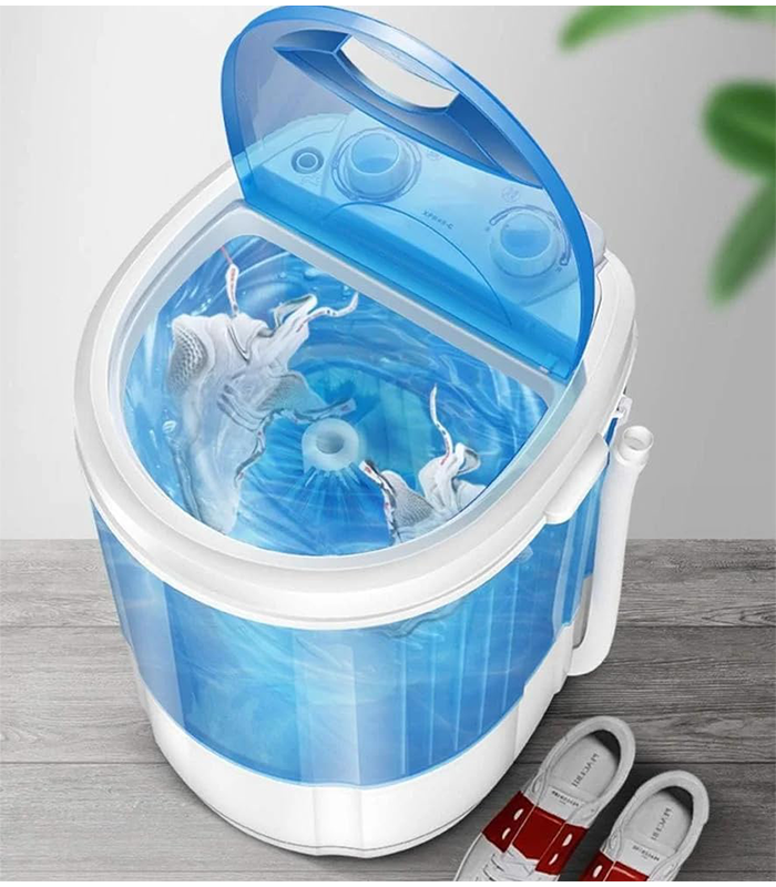نقدم لكم غسالة دي إل سي الصغيرة والثورية 2 في 1، المصممة لغسل ملابسك وأحذيتك. بسعة 4.8 كجم، تعتبر هذه الغسالة المدمجة مثالية للحمولات الصغيرة والملابس الرقيقة وملابس الأطفال وحتى أحذيتك الرياضية. تتميز بوظيفة مخصصة لغسل الأحذية مع فرشاة قابلة للإزالة لتنظيف الأوساخ بلطف. تصميمها المحمول والموفر للمساحة يجعلها حلاً مثالياً للشقق والغرف السكنية والمنازل الصغيرة.