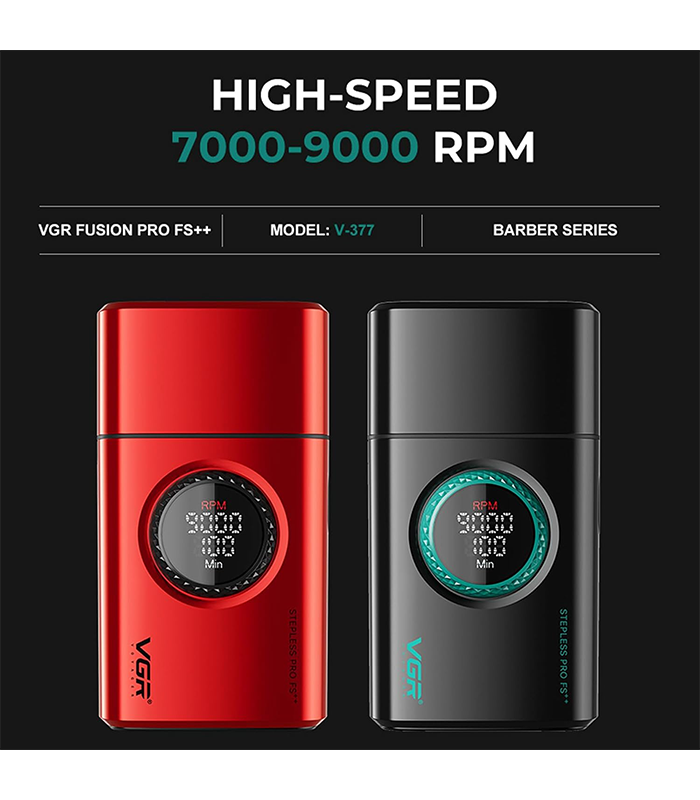 استمتع بمستوى جديد من الدقة في الحلاقة مع ماكينة الحلاقة VGR 377. تم تجهيز هذه الماكينة الكهربائية الاحترافية بمحرك قوي بسرعة 9000 دورة في الدقيقة و21 إعدادًا للسرعة قابل للتعديل، مما يسمح لك بتخصيص الحلاقة حسب كثافة لحيتك ونوع بشرتك. توفر الرقاقتان المزدوجتان من التيتانيوم المضاد للحساسية حلاقة ناعمة ودقيقة بشكل لا يصدق دون تهيج. تبقيك شاشة LED الذكية على اطلاع بحالة السرعة والبطارية. بلمسة نهائية باللون الأحمر المذهل، تعد هذه الماكينة خيارًا من الدرجة الأولى للحلاقين والاستخدام المنزلي على حد سواء.