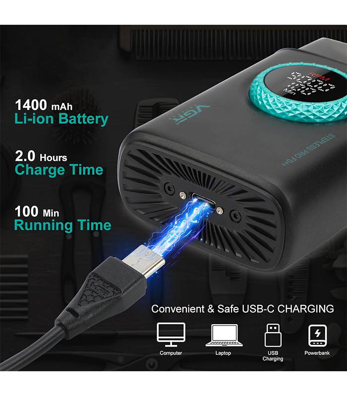 تم تصميم ماكينة الحلاقة VGR 377 لأولئك الذين يطلبون حلاقة فائقة. في قلبها يوجد محرك عالي الأداء تصل سرعته إلى 9000 دورة في الدقيقة، مما يوفر القوة اللازمة لقص حتى أكثف الشعر بسهولة. ما يميز هذه الماكينة هو قدرتها الفريدة على تعديل السرعة بـ 21 مستوى، مما يمنحك تحكمًا لا مثيل له لضبط الأداء للمناطق الحساسة أو اللحية الخشنة. يتميز رأس الحلاقة برقائق مزدوجة ومستقلة وعائمة مصنوعة من التيتانيوم المضاد للحساسية، والتي تنزلق بسلاسة على منحنيات وجهك وفكك ورقبتك لتقديم حلاقة دقيقة خالية من العيوب مع تقليل تهيج الجلد. تعد شاشة LED المدمجة ميزة عصرية، حيث تعرض بوضوح إعداد السرعة الحالي وعمر البطارية المتبقي، حتى لا تتفاجأ أبدًا بنفاذ الشحن. تم تصميم هذه الماكينة مع أخذ المحترفين في الاعتبار، وتتميز بهيكل قوي ومريح للاستخدام المريح أثناء الاستخدام لفترات طويلة. سواء كنت حلاقًا تبحث عن أدوات موثوقة أو رجلاً يريد رأسًا أصلعًا مثاليًا أو وجهًا حليقًا بالكامل، فإن VGR 377 توفر القوة والدقة والأناقة.