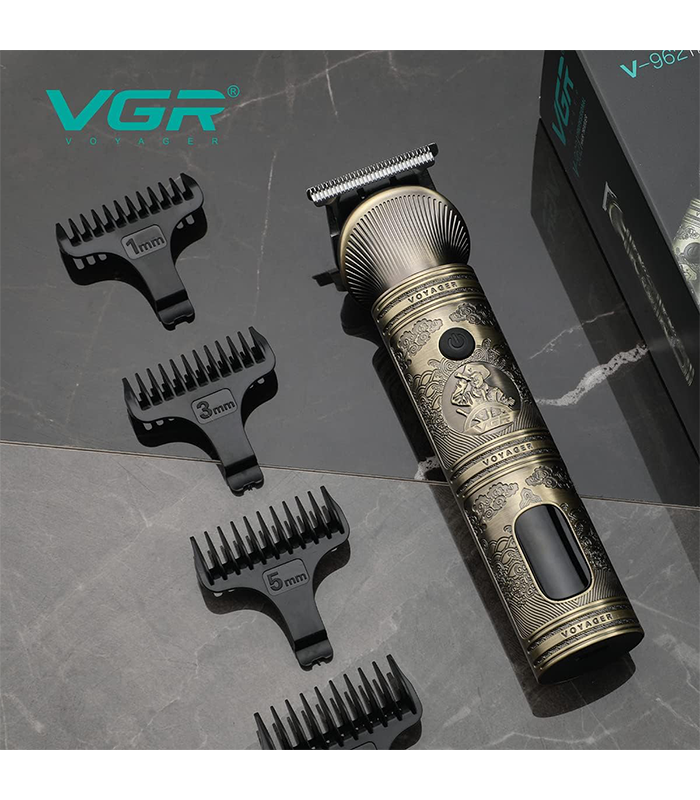 ماكينة حلاقة VGR V-962 احترافية بشاشة رقمية، شفرة T صفرية 0 ملم، تشغيل 200 دقيقة، بطارية 1200 مللي أمبير، 4 أمشاط، لتحديد اللحية